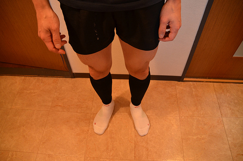 登山でよく利用しているふくらはぎのサポーターを、マラソン時にも着用することにしました。足首からふくらはぎへ段階的に弱くなる圧力をかけることで、血液が心臓へ戻るのをサポートし、疲労物質等の分解を早くします。坂道は脚に大きな負担がかかるため、サポーター着用による安心感は大きいです。サポーター無しでレースに出場することは、今後はないと思います。