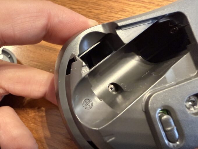 今回のマウスは、電池スペースの中にネジがありました。