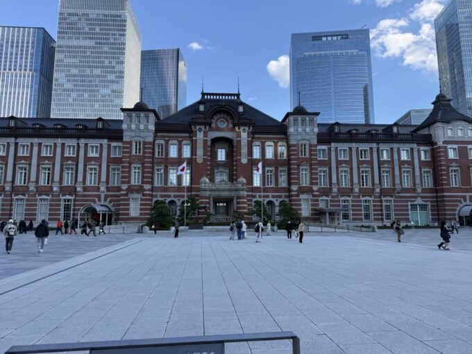 東京駅から新幹線で帰るときは、丸の内のオアゾの丸善に寄って、この東京駅の広場に来ます。気持ち良い!
