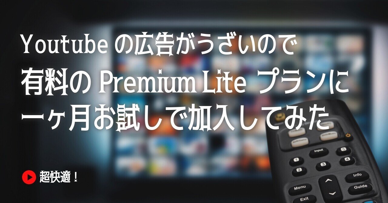 Youtubeの広告がうざいので。有料のPremium Liteプランに一ヶ月お試しで加入してみた|わかったnote@かん吉