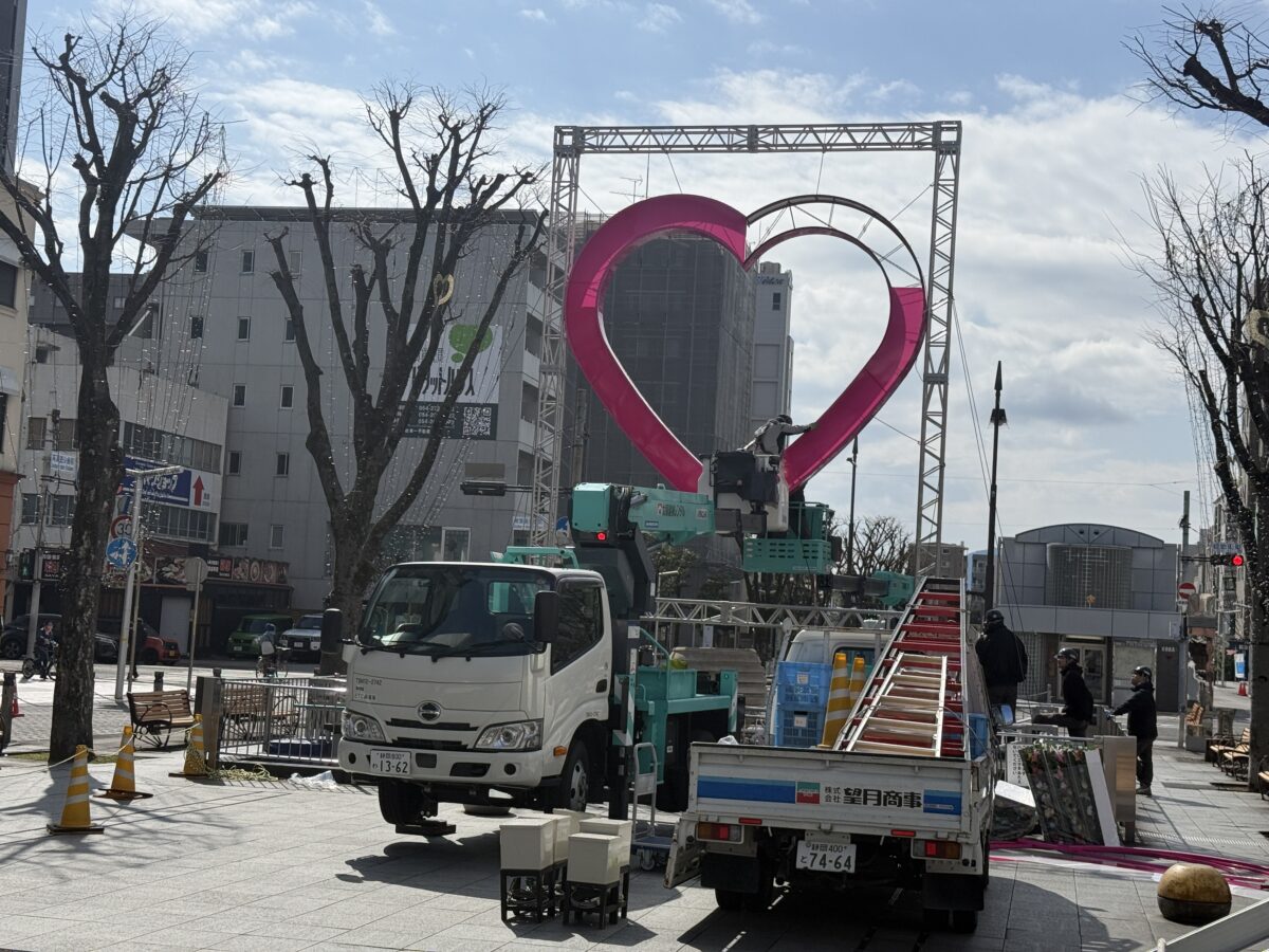 青葉公園のイルミネーション撤去工事が行われていました。静岡の冬の風物詩です。